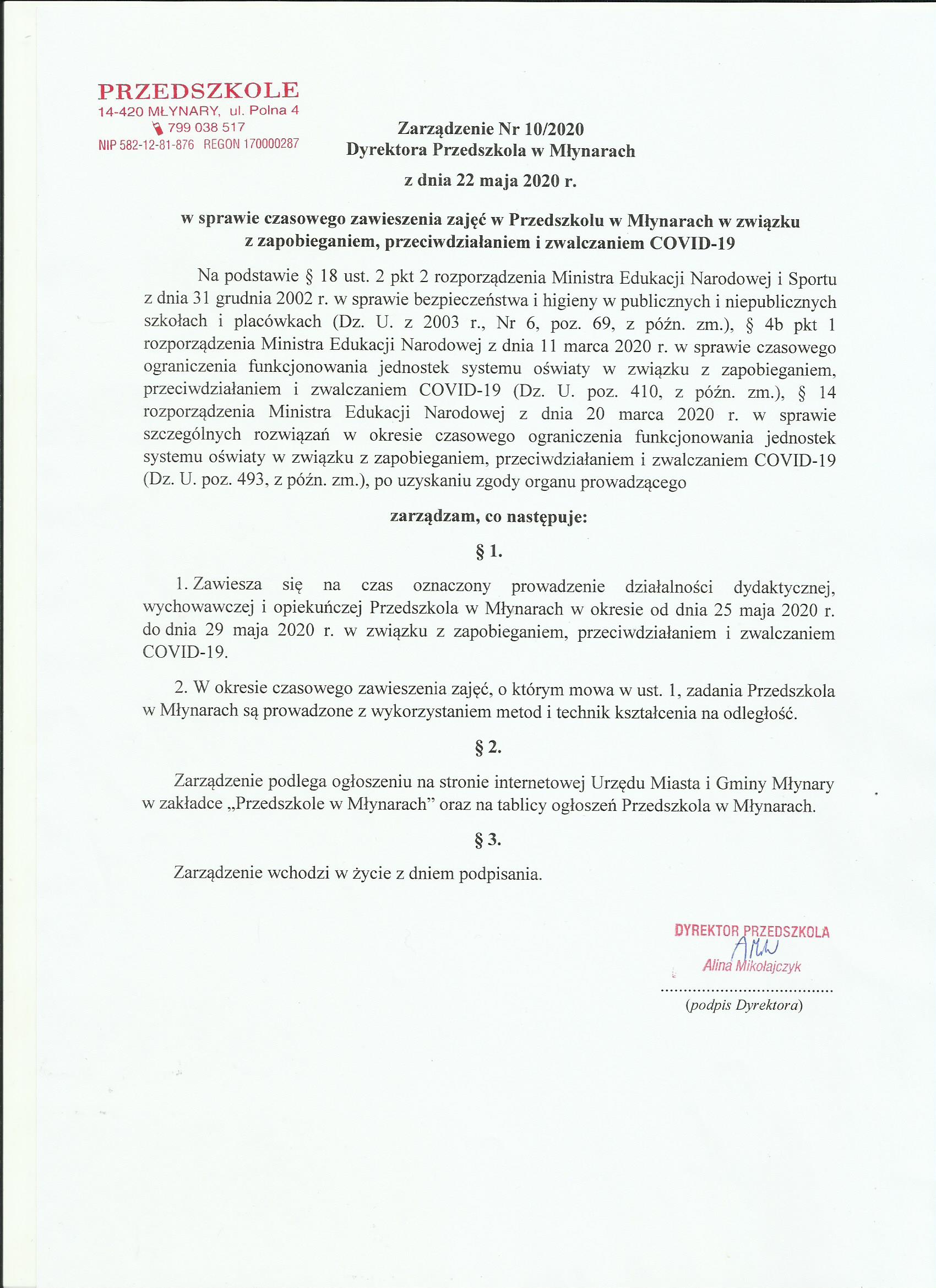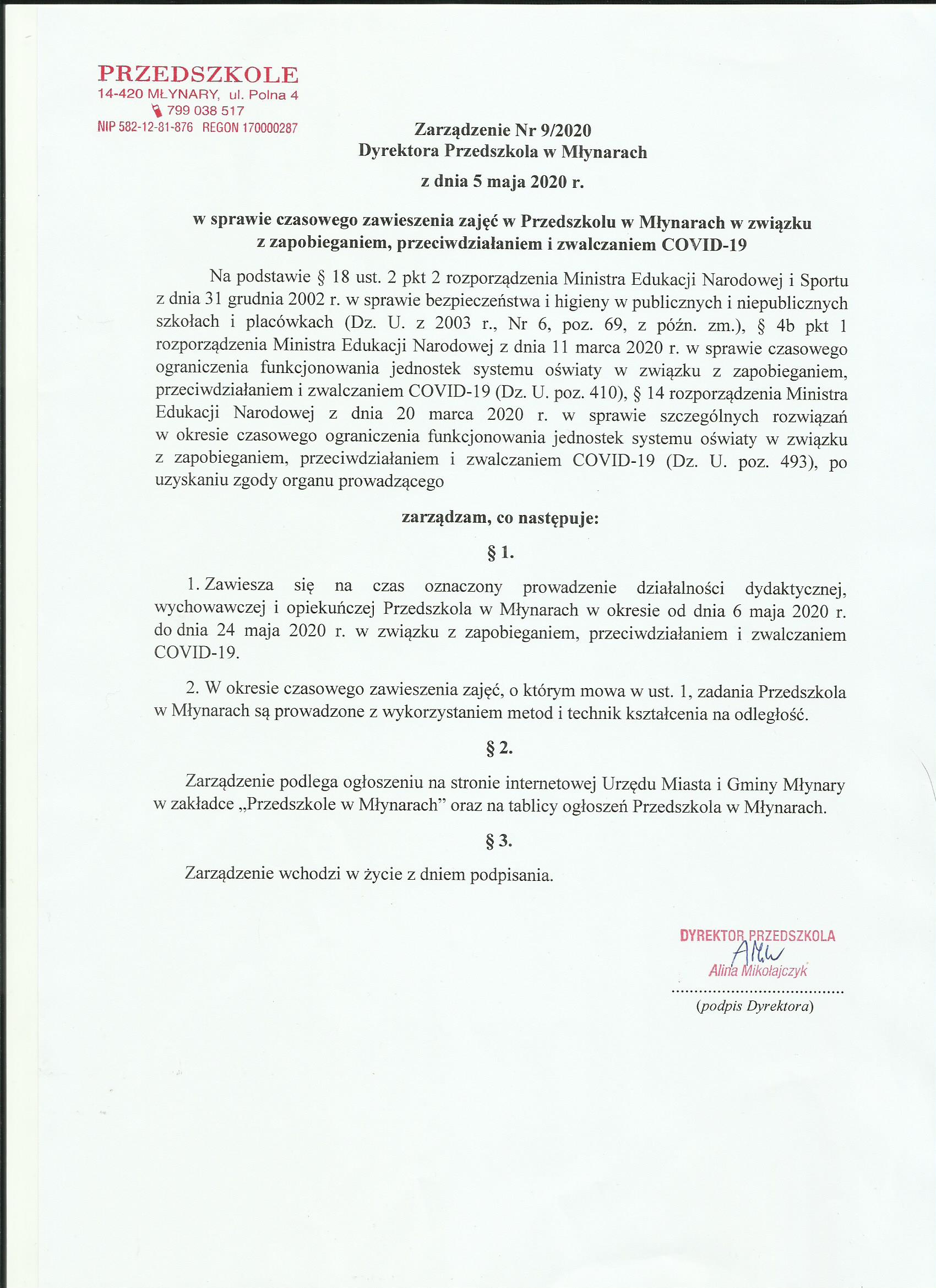 Przy okazji informuję, że w roku szkolnym 2020/2021 w Przedszkolu w Młynarach będzie nadal funkcjonować 5 grup: