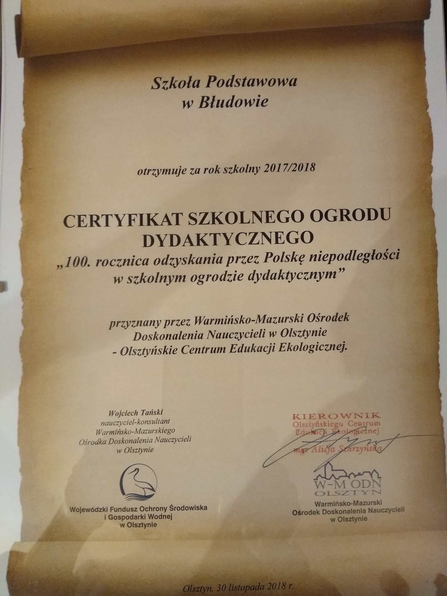 W Olsztyńskim Planetarium i Obserwatorium odbyło się podsumowanie konkursu CERTYFIKAT SZKOLNEGO OGRODU DYDAKTYCZNEGO.  Nasza  szkoła uczestniczyła w konkursie i   otrzymała pamiątkową statuetkę i certyfikat. W trakcie gali była  wystawa z nadesłanych przewodników po ogrodach dydaktycznych oraz projekcja filmu  pn. „Zobaczyć Niedostrzegalne”, czyli wybierz się na Planetę Las. Galę uświetniła wyjątkową wystawa „Fascynujący Świat Pająków i Skorpionów”.