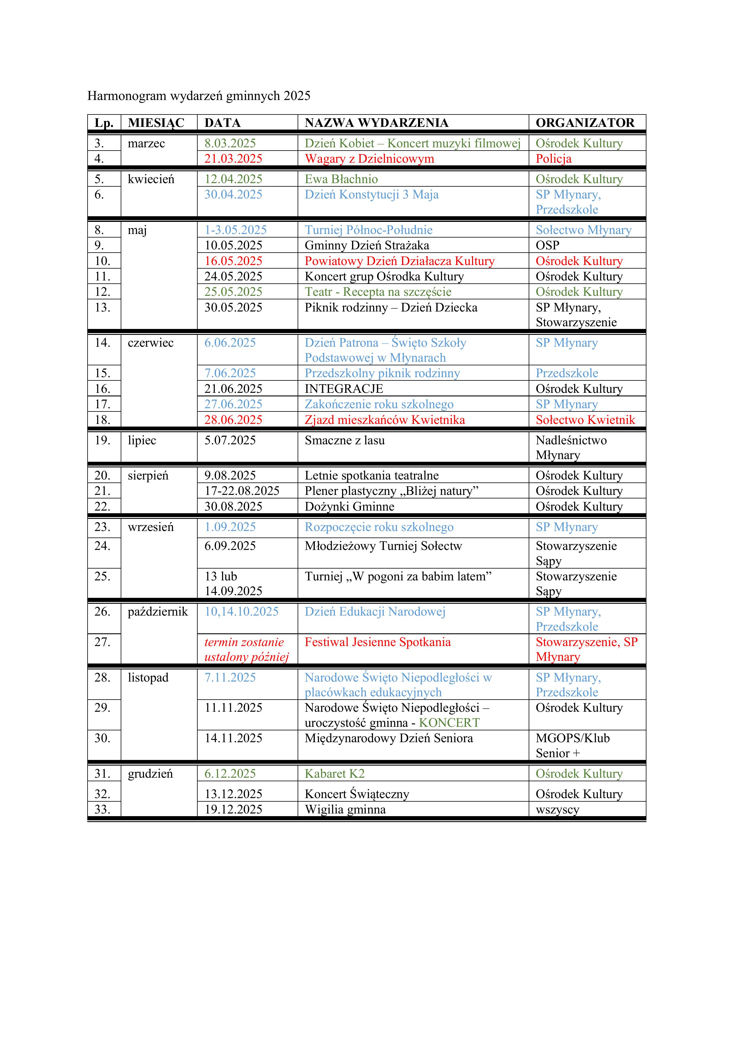 Organizatorzy zastrzegają sobie prawo zmiany terminu imprez z przyczyn niezależnych od organizatora.